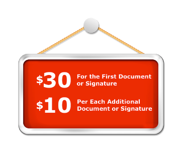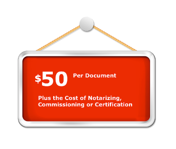 Our prices are simple: $30 to commission, certify or notarize the first document and $10 for each document or signature thereafter, plus HST.