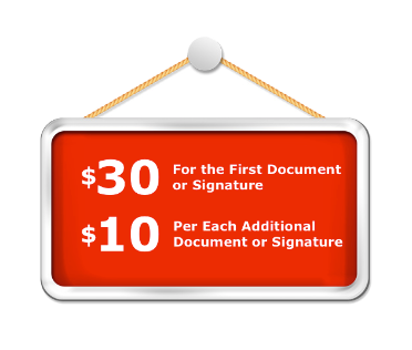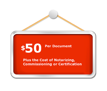 Our prices are simple: $30 to commission, certify or notarize the first document and $10 for each document or signature thereafter, plus HST.